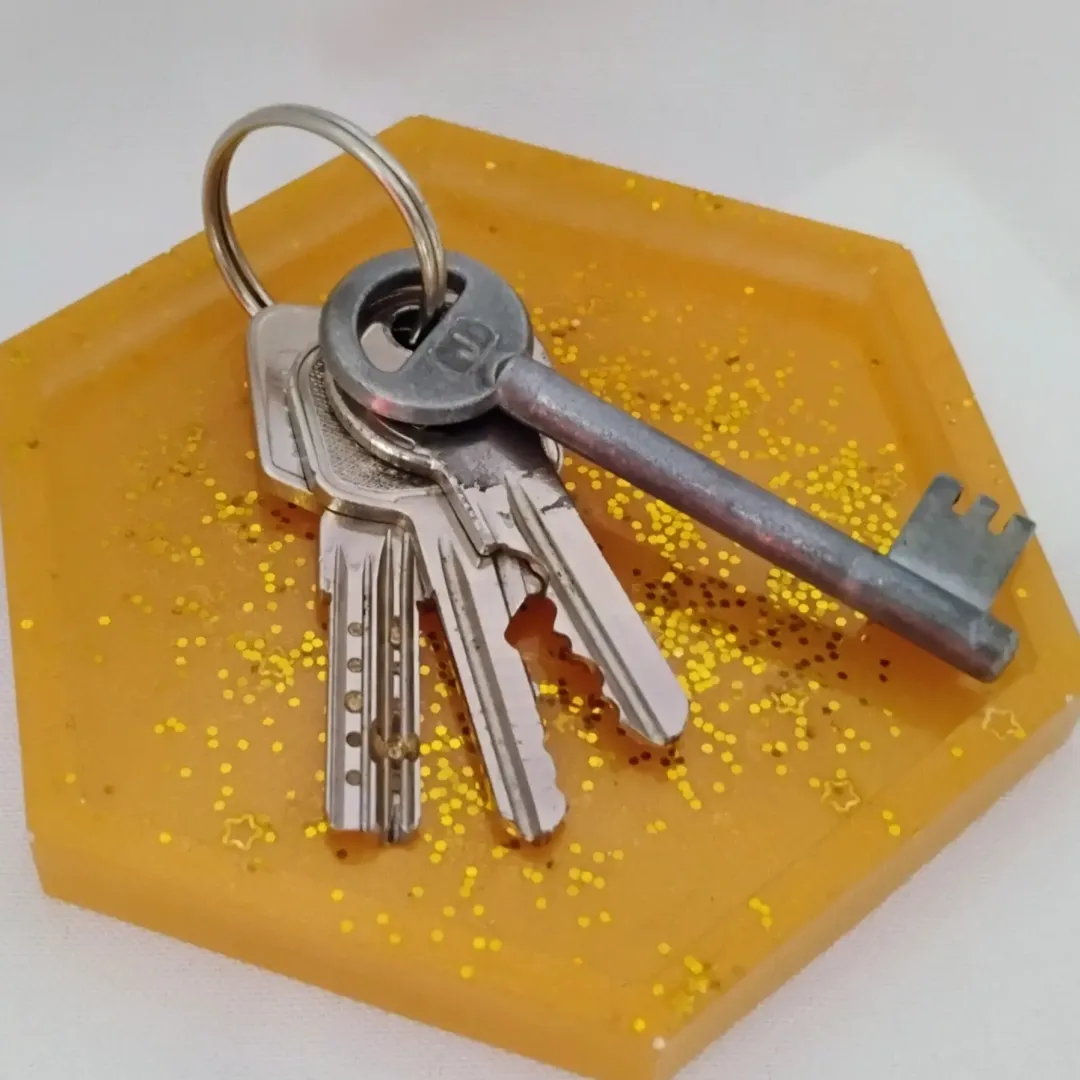 Ékszerek, kulcsok, apró tárgyak tárolására, Gyantából készül. Mérete:10*10 cm