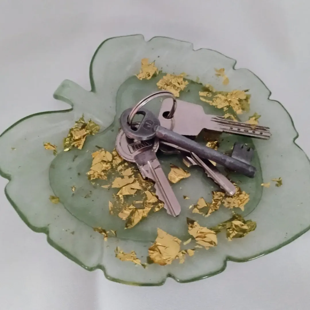 Ékszerek, kulcsok, kisebb tárgyak tárolására. Gyantából készül. Mérete: 15*15,5 cm