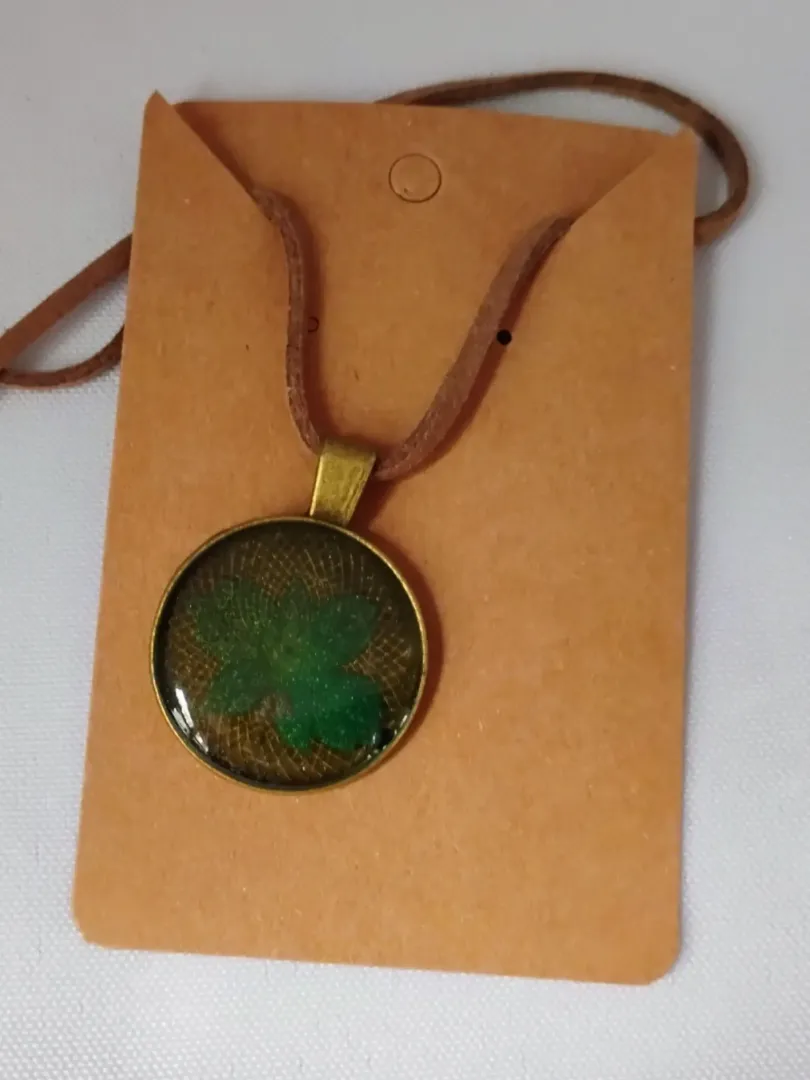 Gyanta medál, Zárt bronz keret, bőr nyaklánc