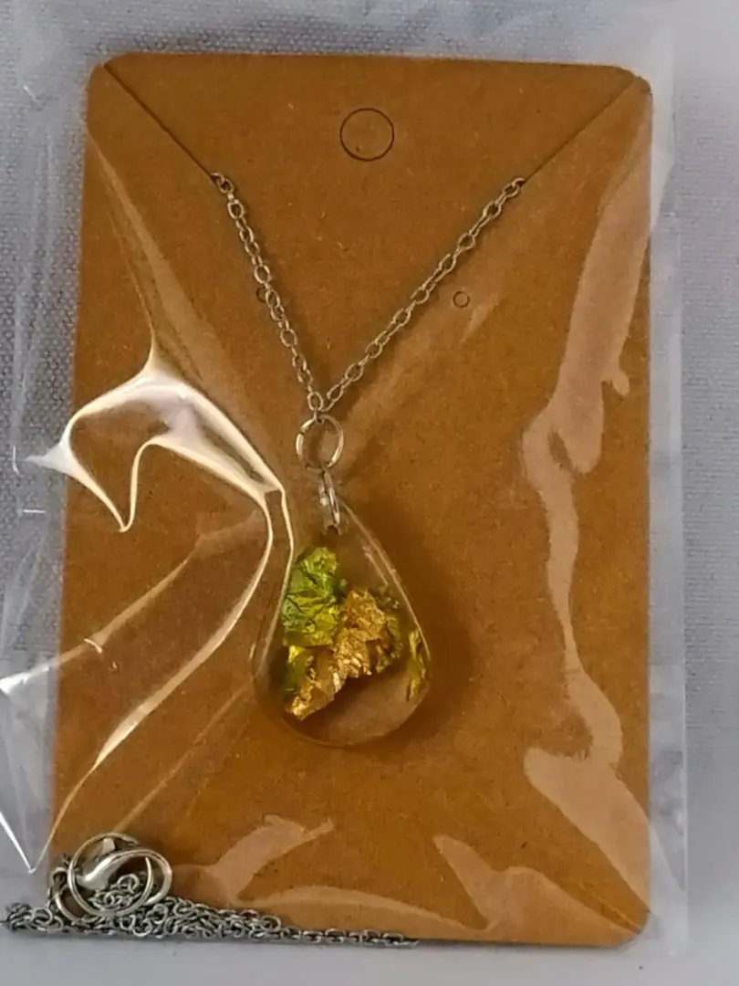 Gyanta medál, keret nélkül, ezüst lánc