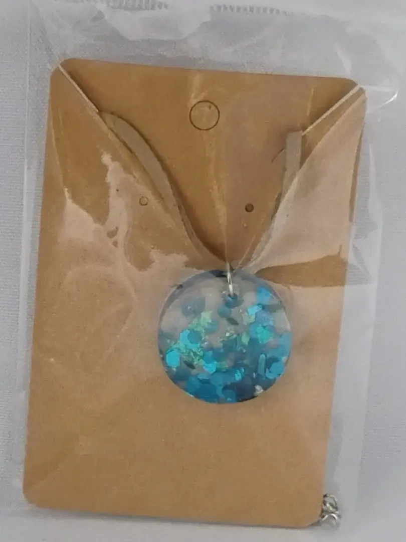 Gyanta medál,keret nélkül, bőr lánc