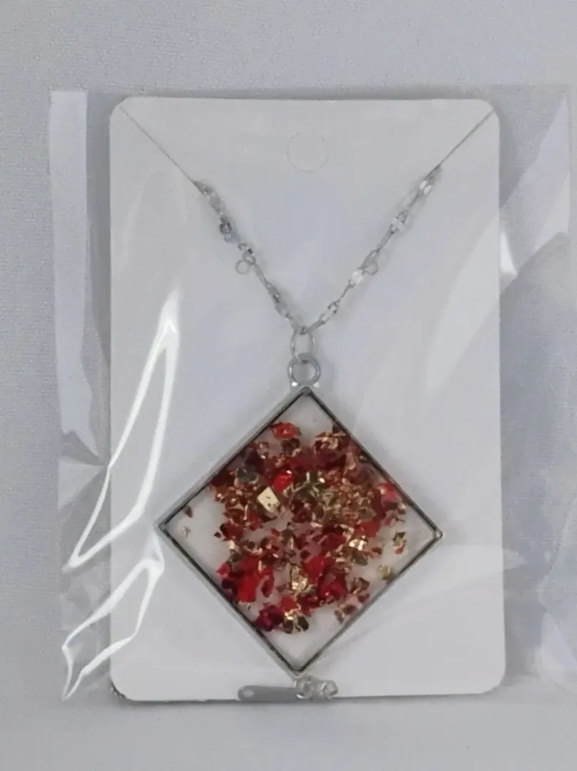 Nyaklánc Négyzet Arany-Piros kővel