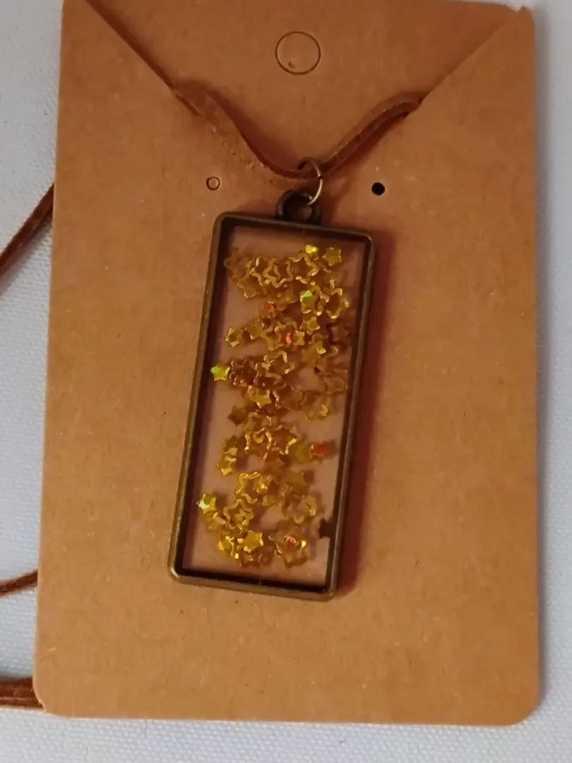 Gyanta medál, Bronz keret, Bőr Lánc